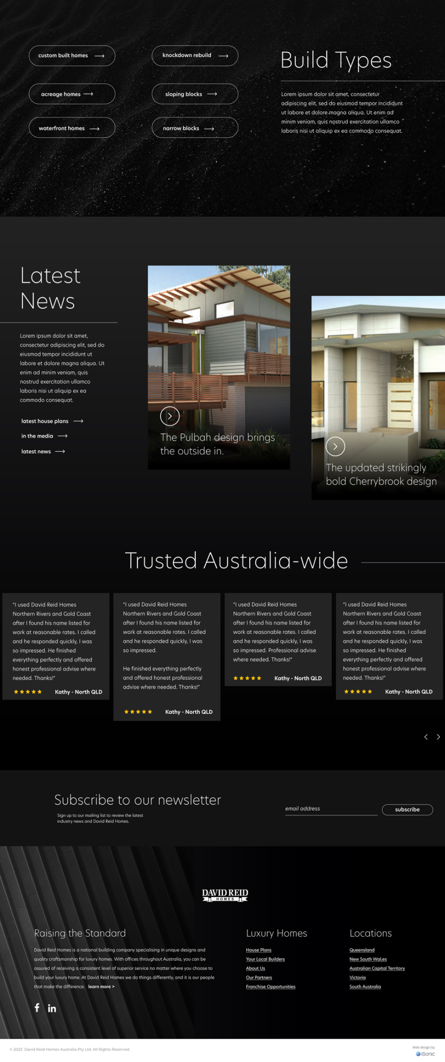 The partnership between iSonic Digital and David Reid Homes resulted in a visually captivating website design that supported custom functionalities. A clean and elegant design, coupled with stunning visuals, helped to bring the custom home designs to life, leaving a lasting impression on visitors. We integrated innovative CSS animations, including parallax effects and responsive drawing elements, to add movement and dynamism to the user experience. With engaging visuals paired with a user-centred design approach, this website enables seamless navigation and easy access to key information. This includes the custom-built house plans library showcasing all of the house plans David Reid Homes and their franchisees offer. The user-friendly filtering system allowed users to sort plans by custom categories, facilitating an effortless search for their dream home. This system proved valuable, enabling potential clients to explore the diverse range of luxury home designs efficiently.